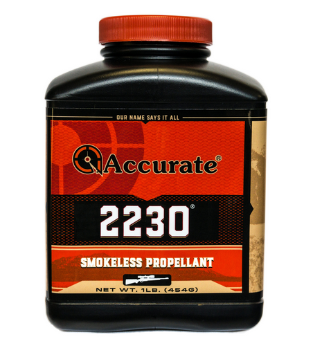 Accurate 2230 Smokeless Gun Powder For Sale. The Accurate 2230 has excellent flow characteristics and grain size of 2230 make it ideal for medium caliber loading. This powder is versatile, spherical, double-base, and fast burning for rifles. This powder will work well with big bore straight wall cartridges including the 458 Winchester. 2230 can be used in small and medium caliber cartridges such as the 308 Winchester. Made in Belgium.