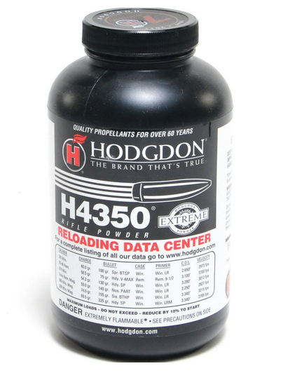Hodgdon H4350 rifle powder is an extruded propellant that has shortened improved grains which make it better for varying temperatures and for metering. This is a popular powder and is ideal for magnums using light to moderate weight bullets. This propellant is a great choice for WSM 270, 7mm, 30 or 325. Get your Hodgdon H4350 in a 1lb or 8lb container.
