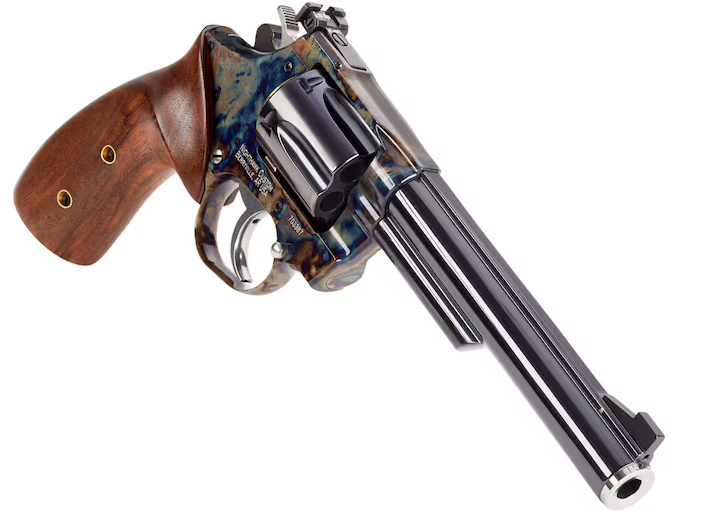 Korth Vintage 357 Magnum Revolver For Sale. The Korth Vintage Revolver is a must-have for any revolver enthusiast. This exquisite revolver boasts a stunning color-case hardened frame, complemented by a high-polished, charcoal blue barrel shroud and cylinder, creating a striking contrast. It is available with either a 4″ or 6″ barrel.
