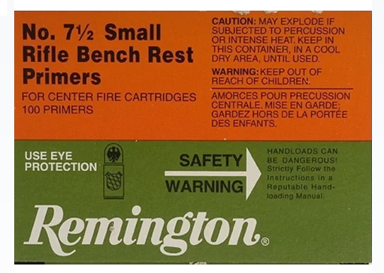 Remington Benchrest Small Rifle Primers #7-1/2 For Sale. Remington 7 1/2 Small Rifle Bench Rest Primers feature large striking areas and ultra-fast ignition. Shop Powder Valley for Rem 7 1/2 Small Rifle BR Primer.