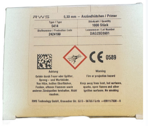 Ruag #5414 Large Pistol Primers For Sale. RUAG Ammotec manufactures Boxer primer caps for all current small calibers. RUAG Ammotec produces not only cartridge cases of the most commonly used calibers for Armed Forces and law enforcement (5.56mm, 7.62mm, 9mm and 12.7mm) but also a large variety of other cases.